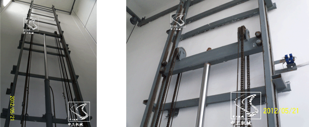 鏈條導(dǎo)軌式升降機:這個種類產(chǎn)品升降幅度靈活,承載負(fù)荷大,體積小巧輕便,不受空間限制,適用于不能挖地坑的倉庫、廠房和樓梯井道等狹窄的場所。它不同于剪叉式升降機結(jié)構(gòu),而是由兩根或四根導(dǎo)軌固定到墻體或鋼結(jié)構(gòu)框架上,上導(dǎo)向滑車通過兩道鏈條于下導(dǎo)向滑車相連,下導(dǎo)向滑車相連于工作臺面相連,由直立的液壓油缸推動上導(dǎo)向滑車帶動下導(dǎo)向滑車達(dá)到升降的目的。由于它能在復(fù)雜場所安裝、運行穩(wěn)定及維護保養(yǎng)方便的這種優(yōu)勢,是廣大客戶優(yōu)先選擇的產(chǎn)品。